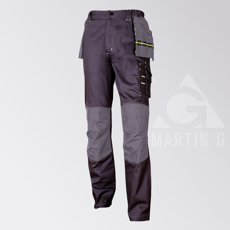 Diseñado para el máximo rendimiento en el trabajo. Tipo cargo de calce recto con bolsillos multiusos y porta herramientas desmontable. Fabricado para resistir el desgaste diario. Incorpora rodillas reforzadas con bolsillos y pasadores adicionales. Disponible en combinaciones de color gris/negro y negro/gris.